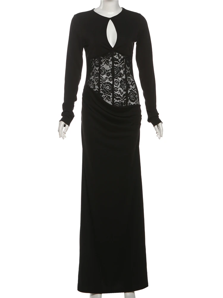 O-Neck Dress – Elegant & Timeless Long Sleeve Maxi